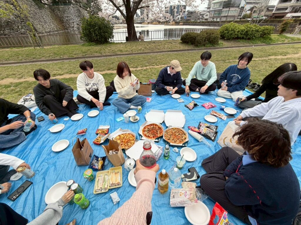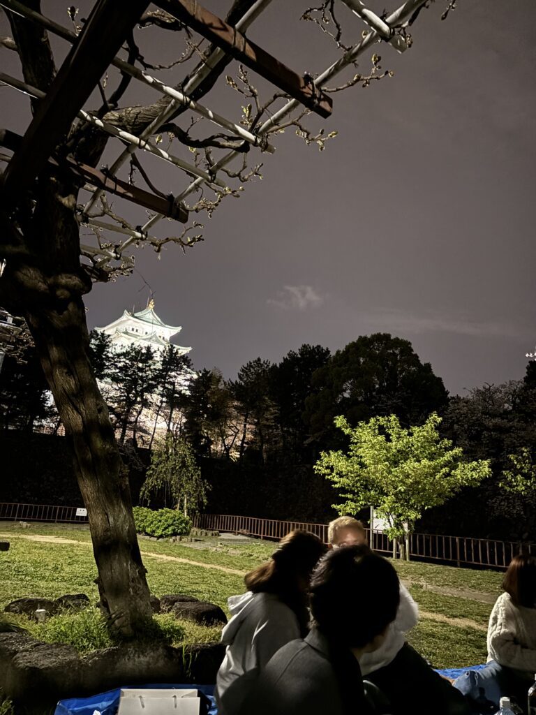 「コロナ以前までは恒例行事であったと聞いていたお花見が、数年ぶりに私達の代で開催されたことをとても嬉しく感じました。当日は、名古屋城がちょうど見える場所を確保することができ、天候にも恵まれ、絶好のお花見日和でした。