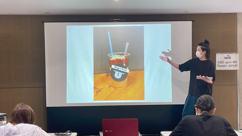 先攻側(MISONO)はナカモ様の赤と白の味噌の2種類と味噌パウダーの保存期間の長い良さを生かした「濃豚」を提案しました。よくお酒を飲む人の中でも宅飲みをする人に着目し、おつまみとして考えました。PR方法は土日の夜のTVCMで仕事で疲れて帰宅し冷蔵庫をあけるとある、という内容を幅広い年代に人気のある阿部寛さんを選定しました。後攻側(なにこれすっご~い)はナカモ様の味噌の特徴を生かしたフラペチーノの「ショッペチーノ」を提案しました。小売りで飲み物を購入する若者をターゲットとし高い新奇性とデザイン性のある商品を考えました。PR方法は店頭でのポップ、SNSとTVでの普及を若者に人気のEXITさんを選定しました。両チームともに実際に提案商品を作り具体的で内容の濃いプレゼンができました。